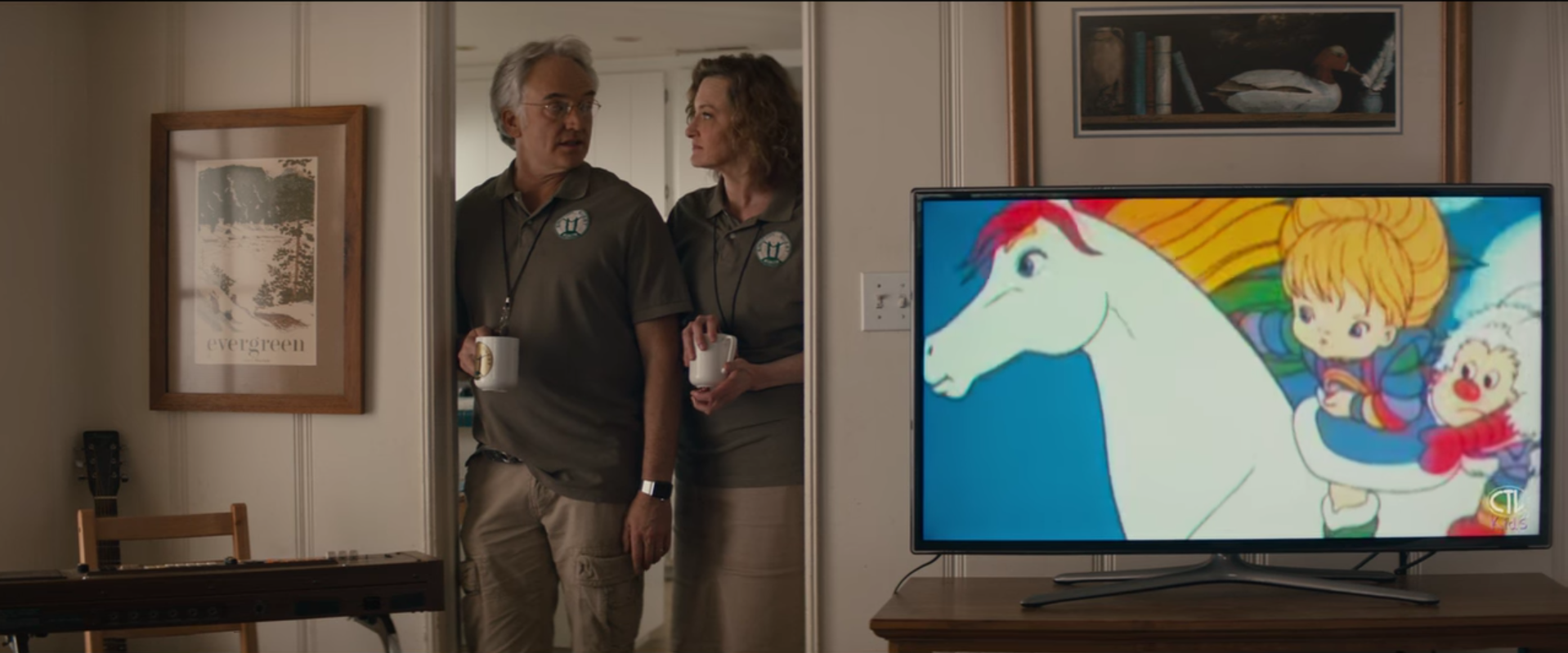 Can I just praise Brie Larson for her directing skills for a second? The color in these scenes is awesome – her whole house is brown. Her parents are bathed in brown. She’s the only source of color – and her cartoons. But the cartoons . . .