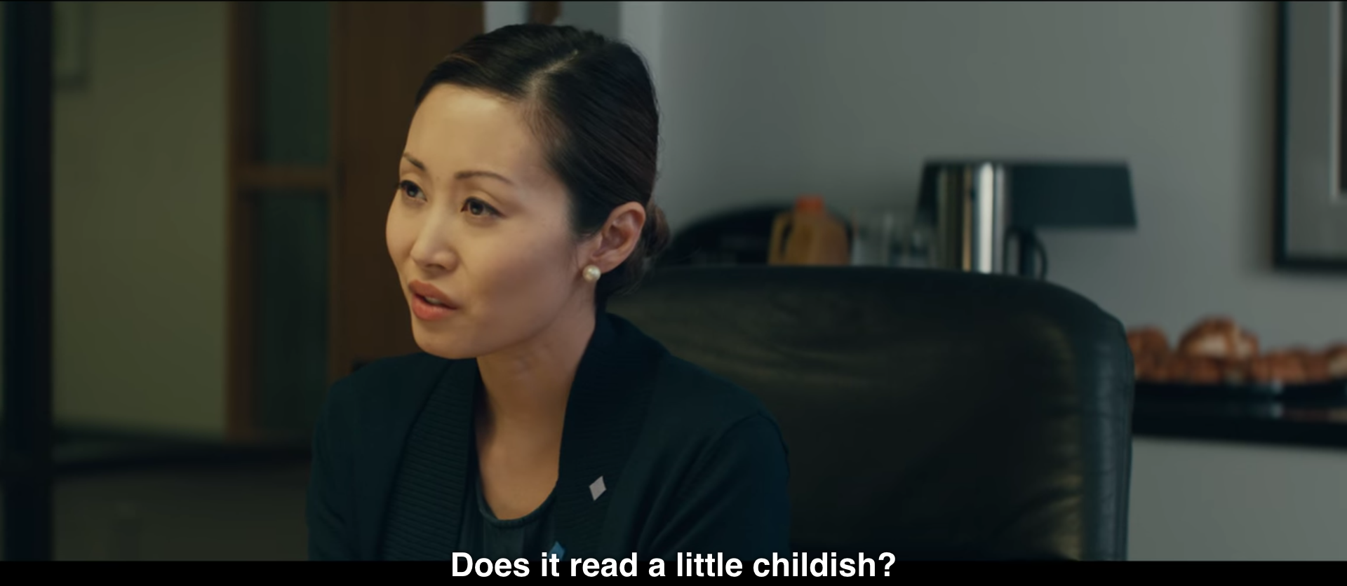 As much color as Kit? No. Normal, everyday color. It’s in this scene she notices her parents have hung up her artwork in the kitchen – incorporating her identity into theirs.